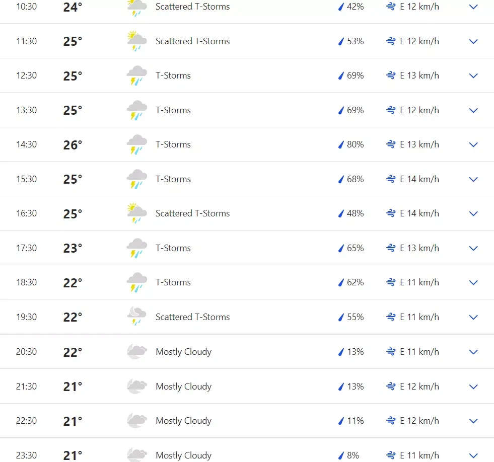After losing their last four games, New Zealand are already under pressure, and they need this win badly. However, the forecast suggests 88 percent chances of rain when the game is scheduled to start. The humidity level will be 79 percent, with a maximum temperature of 26°. The forecast predicts a thunderstorm during the daytime.