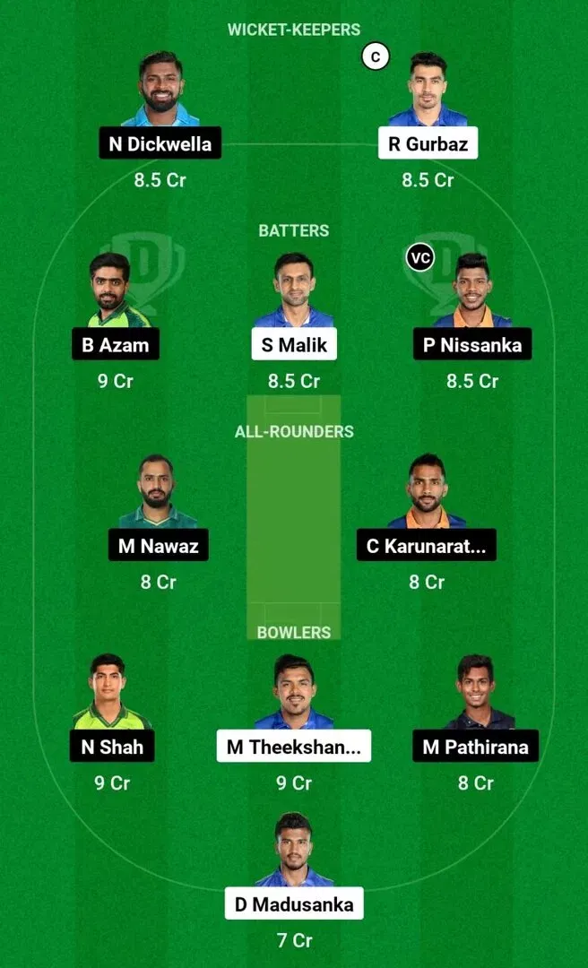 Batters: Charith Asalanka, Shoaib Malik, Babar Azam, Ifthikhar Ahmed, Pathum Nissanka