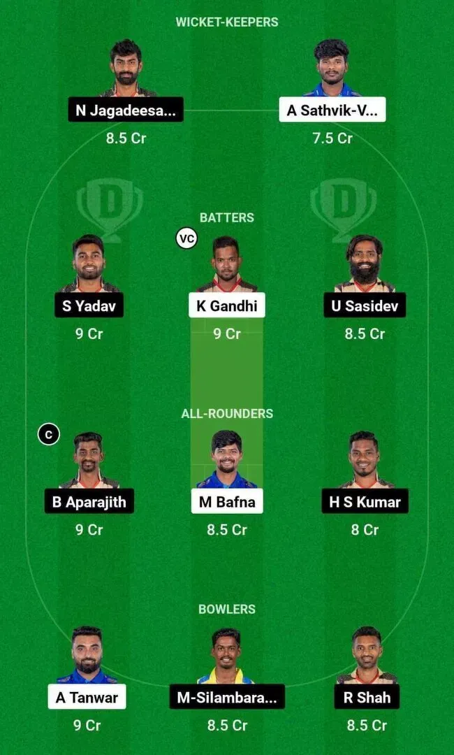 Captain first choice: B.Aparajith || Captain second choice: N.Jagadeesan