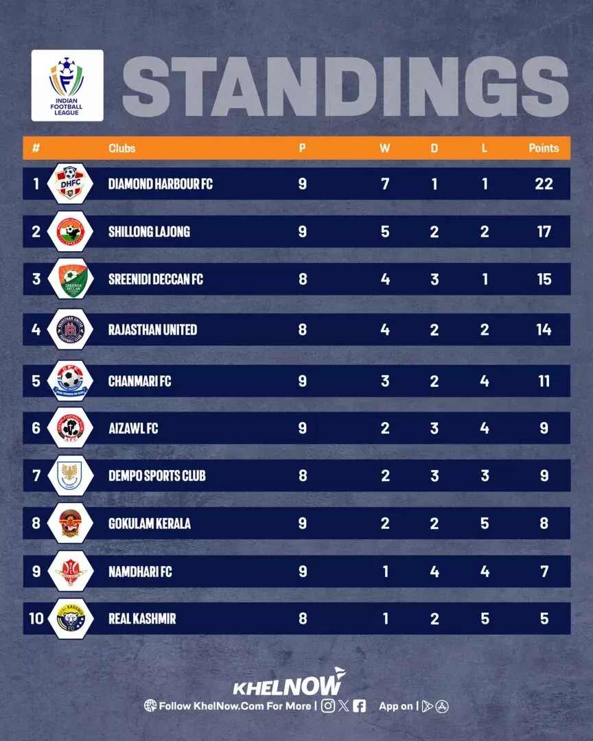 IFL 2025-26: Updated points table, most goals after Shillong Lajong vs Aizawl FC