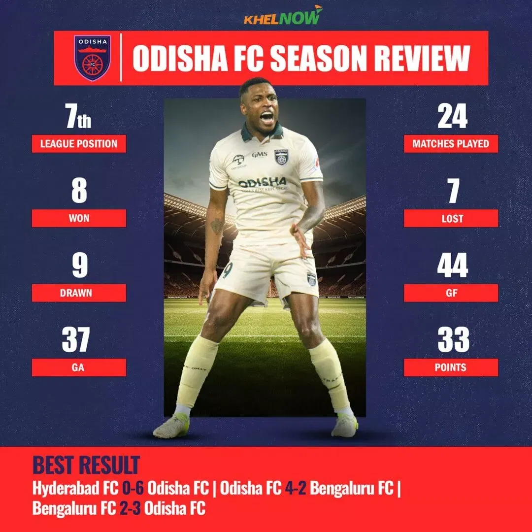 At the end of the league stage, Odisha FC accumulated 33 points in 24 league matches.