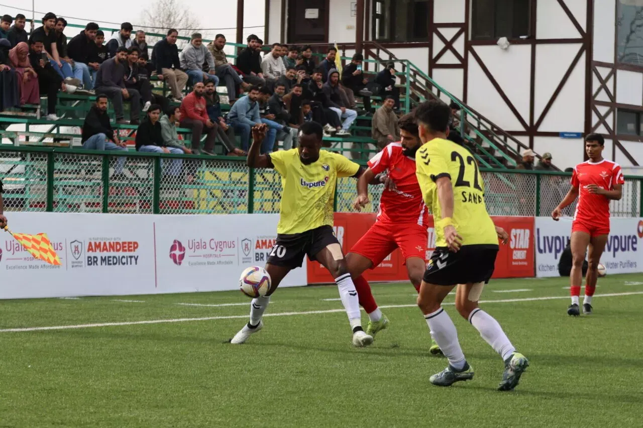 The only real moments of concern for either goalkeeper in the half came from isolated efforts at both ends. Najib Ibrahim tested Real Kashmir goalkeeper Furkan Ahmad Dar with a low strike from the edge of the box, while at the other end, Niraj Kumar was called into action after Karan Kumar Sharma’s miscued clearance looped goalwards, forcing the goalkeeper into an acrobatic save.