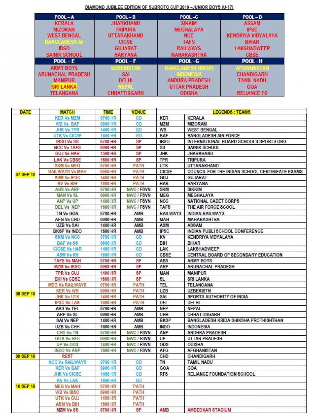 Subroto Cup 2019: Teams, venues, fixtures, prize money and more