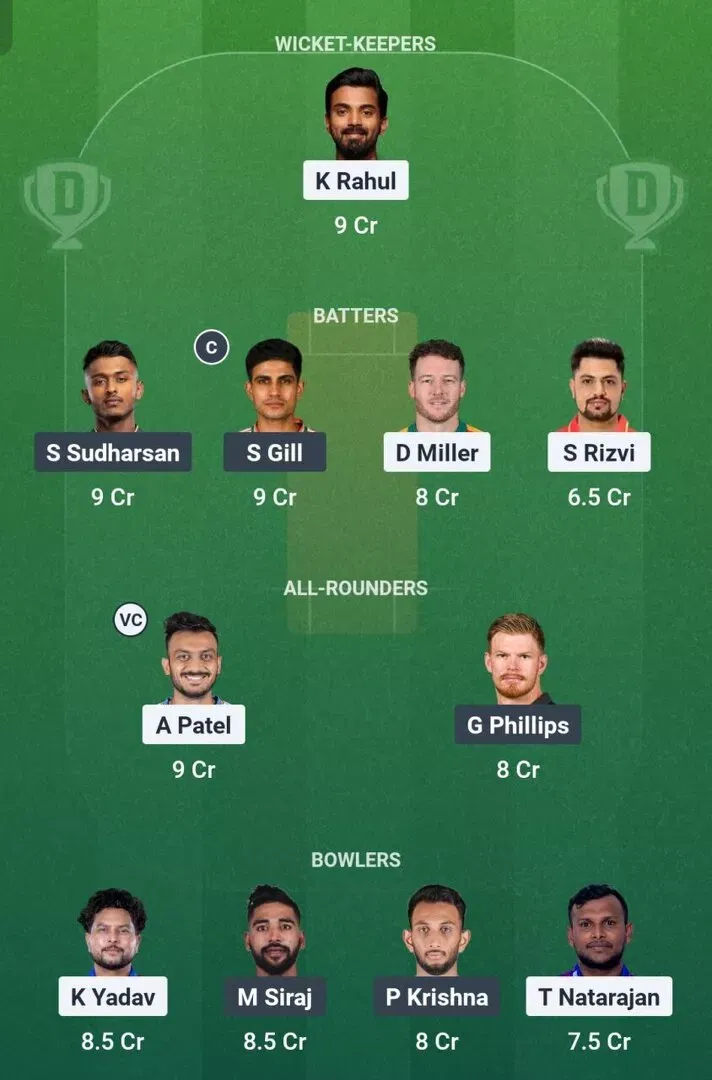 बल्लेबाज: शुभमन गिल, साई सुदर्शन, समीर रिजवी, डेविड मिलर