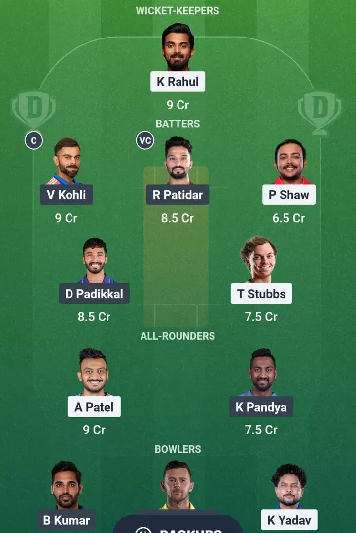 DC vs RCB Dream11 (टीम 2)