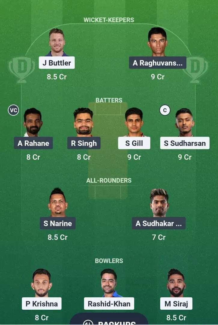 बल्लेबाज: शुभमन गिल, साई सुदर्शन, अजिंक्य रहाणे, रिंकू सिंह