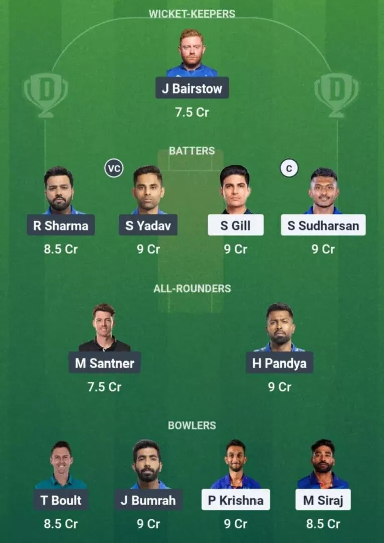 मुंबई की ओर से सूर्यकुमार यादव, जसप्रीत बुमराह, ट्रेंट बोल्ट और हार्दिक पांड्या किसी भी Dream11 टीम के लिए सबसे महत्वपूर्ण खिलाड़ी साबित हो सकते हैं। इसके अलावा, आप अपनी टीम में मिचेल सैंटनर को भी शामिल कर सकते हैं।