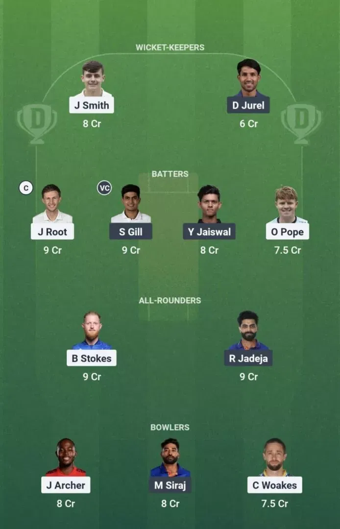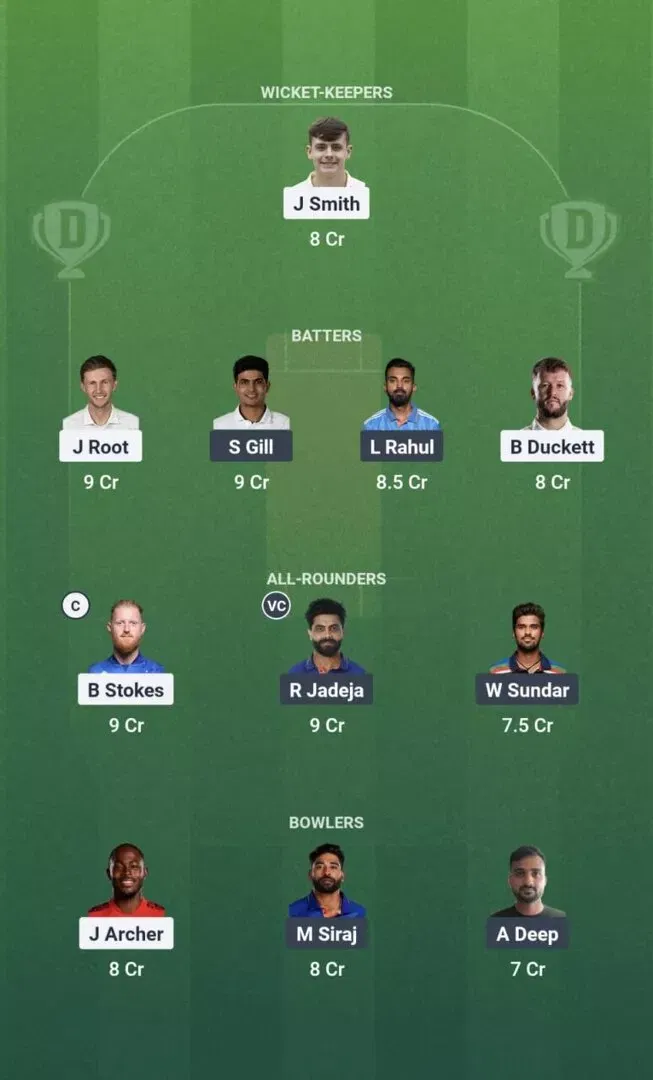 उप-कप्तान पहली पसंद: शुभमन गिल || उप-कप्तान दूसरी पसंद: बेन स्टोक्स