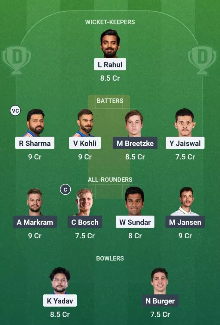 कप्तान की पहली पसंद: कॉर्बिन बॉश || कप्तान की दूसरी पसंद: केएल राहुल