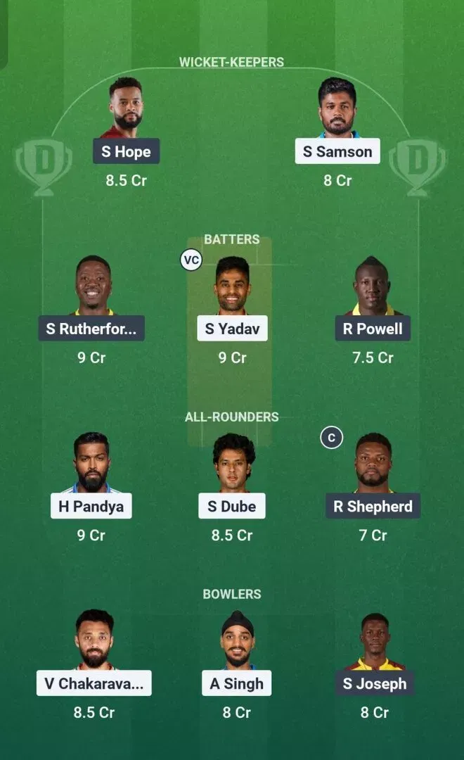 उप कप्तान की पहली पसंद: सूर्यकुमार यादव || उप कप्तान की दूसरी पसंद: रोमारियो शेफर्ड