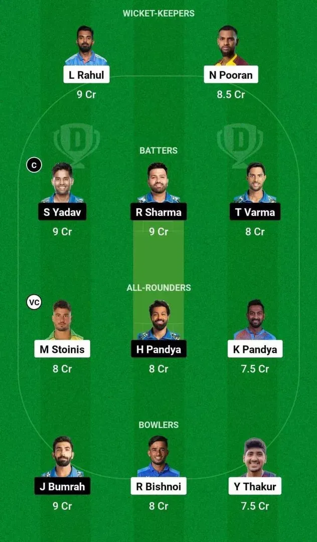 LKN vs MI मैच की Dream11 (Team 1):