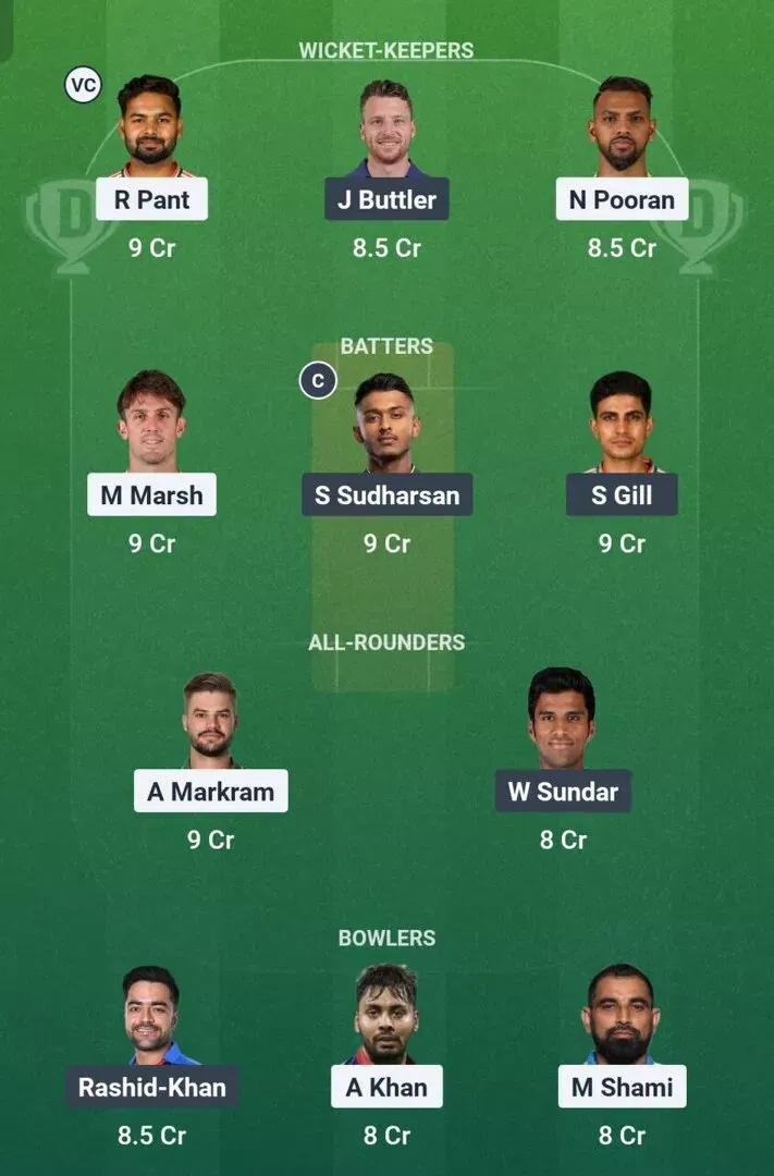 उप कप्तान की पहली पसंद: राशिद खान || उप कप्तान की दूसरी पसंद: मिचेल मार्श