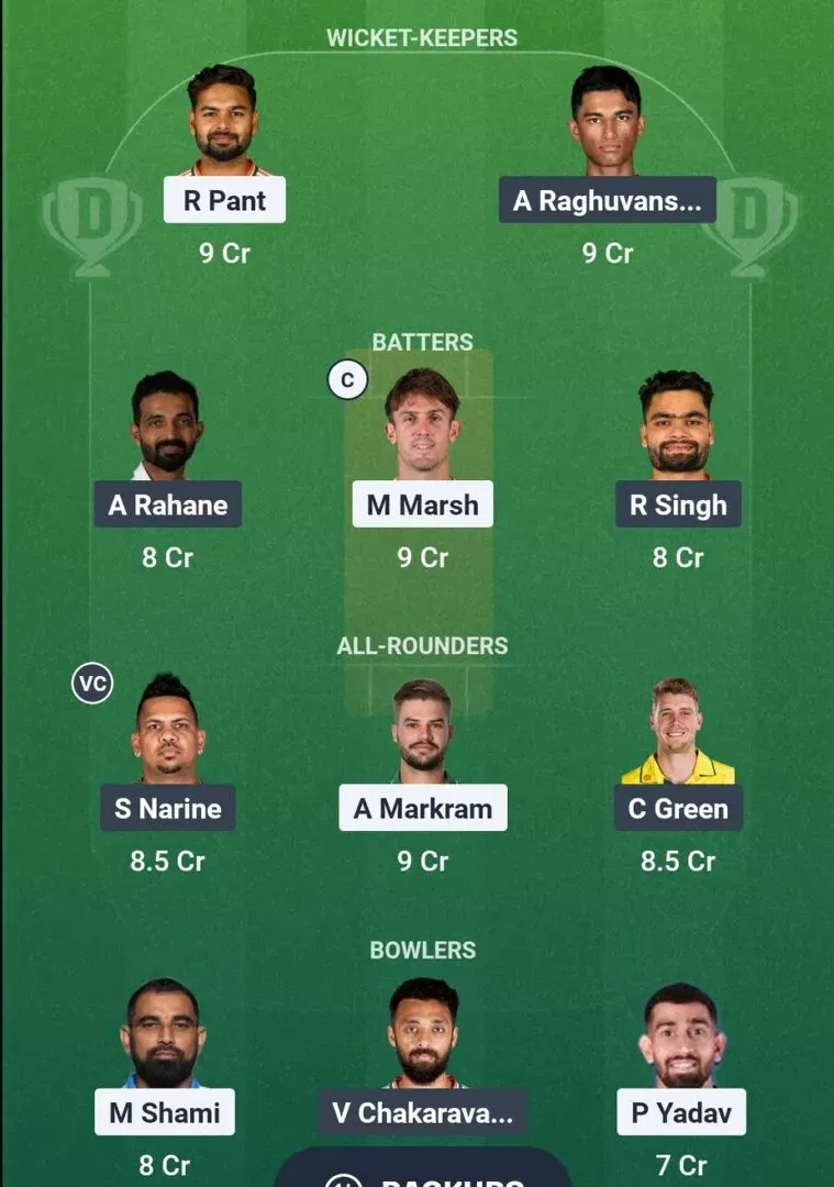 बल्लेबाज: अजिंक्य रहाणे, मिचेल मार्श, रिंकू सिंह