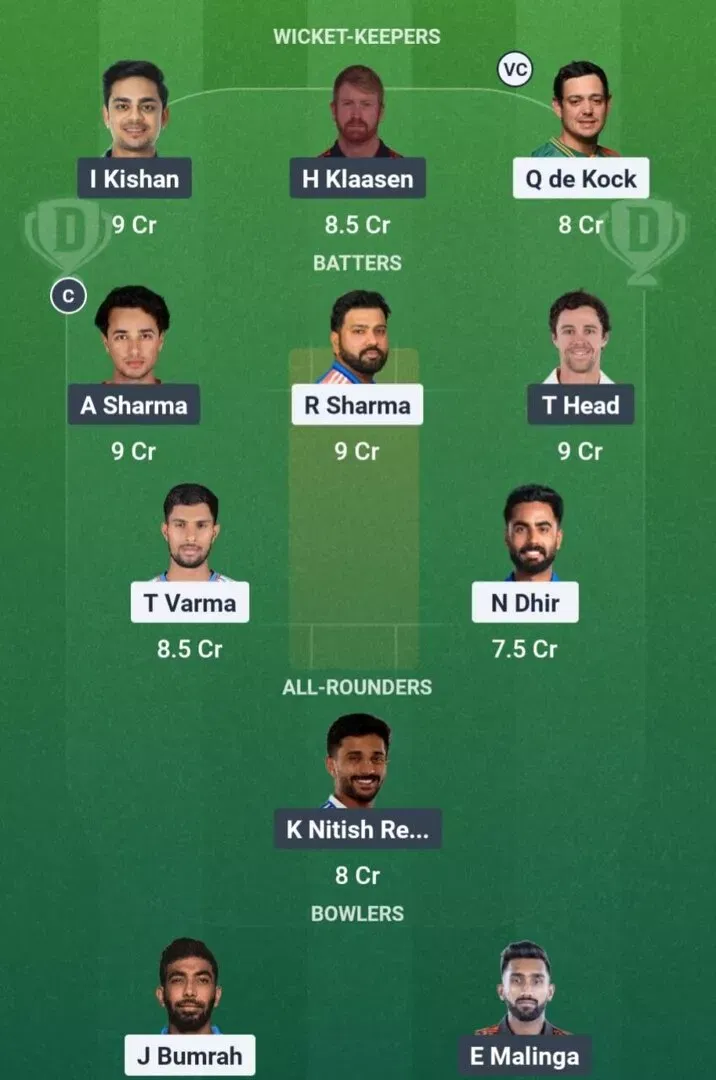 बल्लेबाज: अभिषेक शर्मा, रोहित शर्मा, ट्रैविस हेड, तिलक वर्मा, नमन धीर
