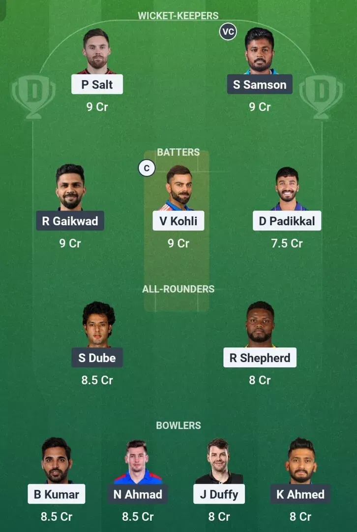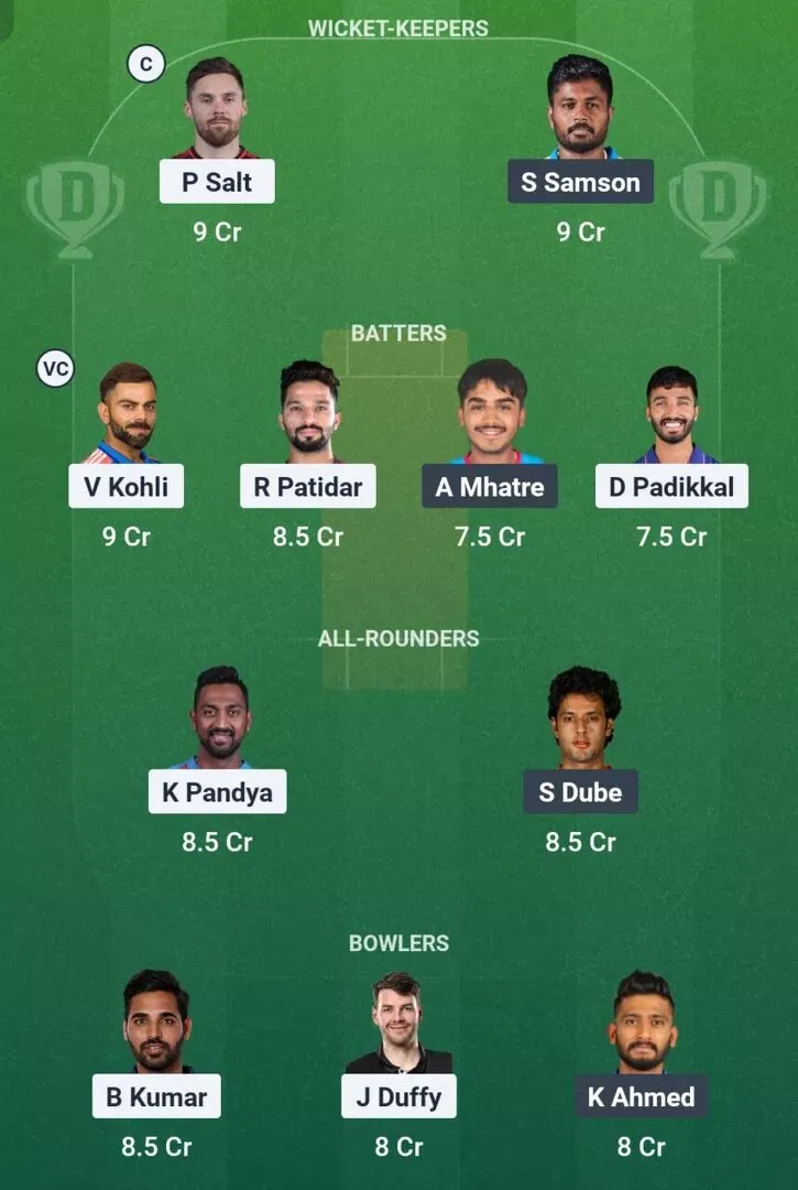 बल्लेबाज: विराट कोहली, रजत पाटीदार, आयुष म्हात्रे, देवदत्त पडिक्कल