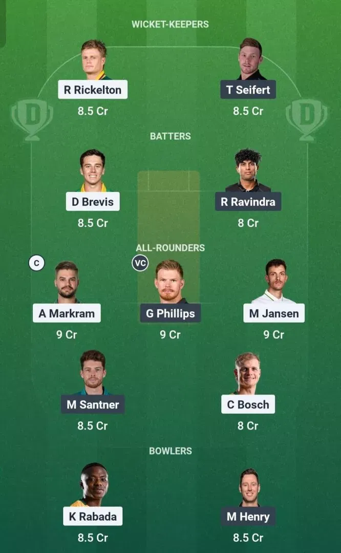 ऑलराउंडर: ऐडन मार्करम, ग्लेन फिलिप्स, मिचेल सैंटनर, कॉर्बिन बॉश, मार्को जान्सेन