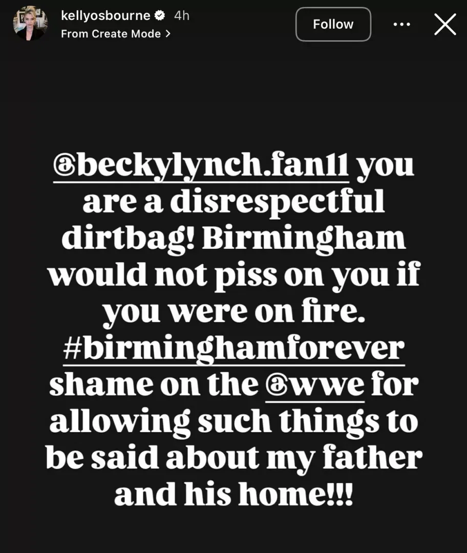 The comment caused uproar for many fans, and Osbourne’s daughter, Kelly Osbourne, expressed her anger, calling out Becky in her IG stories for disrespecting her father.